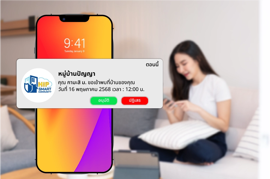 ยกระดับความปลอดภัยและความเป็นส่วนตัวให้กับลูกบ้าน ด้วยฟีเจอร์ Visitor Notification ระบบแจ้งเตือนแบบเรียลไทม์ ที่ช่วยให้ลูกบ้านสามารถควบคุมการอนุญาตเข้าพบผู้มาติดต่อได้ทุกที่ทุกเวลา