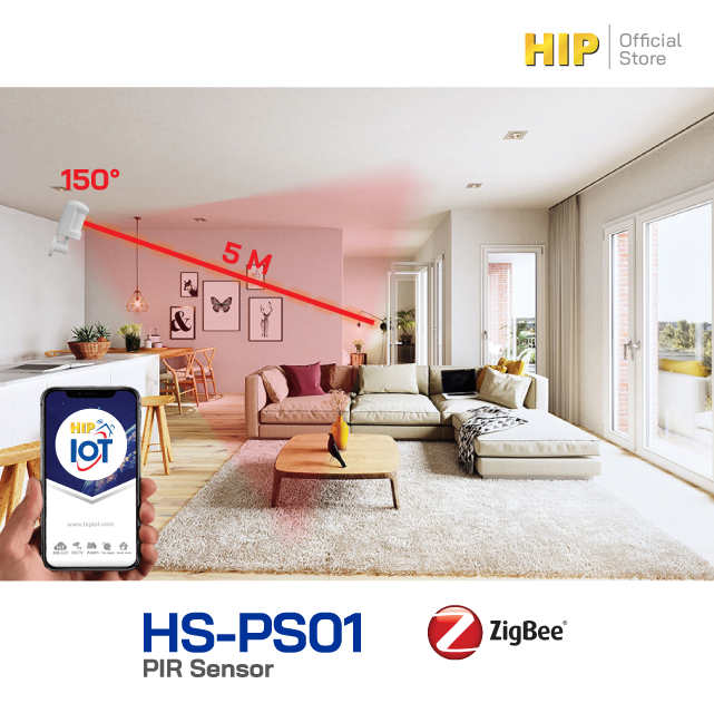 HIP PIR Sensor รุ่น HS-PS01 เซนเซอร์ตรวจจับการเคลื่อนไหวเมื่อมีคนเดินผ่านจุดที่ติดตั้งเซนเซอร์ไว้จะส่งข้อความเตือนไปยังสมาร์ทโฟนแบบบเรียลไทม์ โดยที่ตัวอุปกรณ์ต้องเชื่อมต่อกับ Gateway เพื่อใช้งาน ตัวเซนเซอร์ยังสามารถทำเป็นระบบ Automation ภายในที่อยู่อาศัย เช่น เดินผ่านและทำให้ไฟที่บ้านเปิด หรือ เซอเซอร์ไม่พบการเคลื่อนไหวในบริเวณให้ไฟปิด โดยผ่านระบบ Smart Home