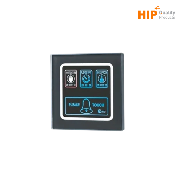 HIP Touch Screen Smart Control System รุ่น CMG-8850SW พร้อมจอสัมผัสอัจฉริยะที่บอกสถานะห้อง แสดงผลผ่านหน้าจอ LED และเสียงสัญญาณกระดิ่งเตือน ออกแบบสวยงามและทนทานด้วยวัสดุกระจกนิรภัย
