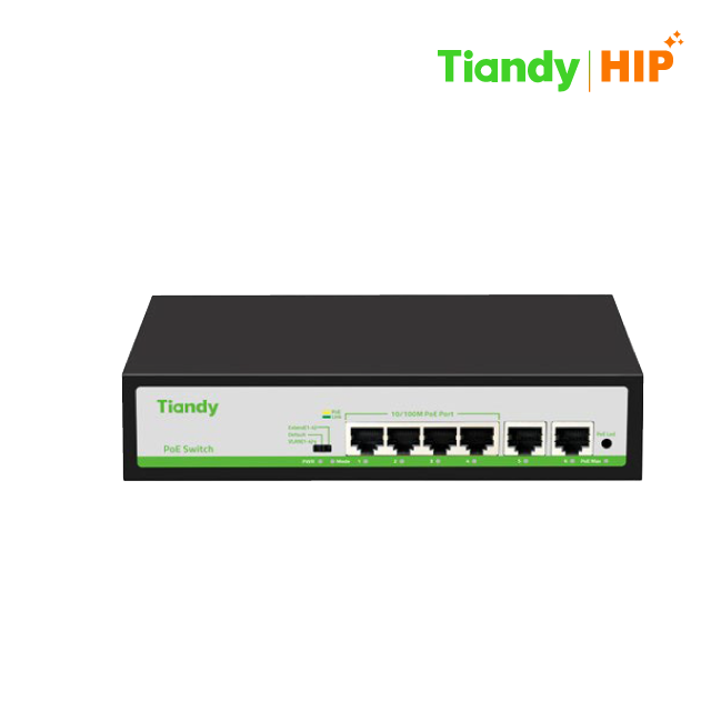 Tiandy PoE Switch TC-P3S06 Spec:F/0420/AT/55 สวิตช์ PoE 6 พอร์ต รองรับ 10/100Mbps พร้อมโหมด VLAN/Extend และระบบป้องกันไฟกระชาก ใช้งานง่ายและเหมาะสำหรับระบบกล้องวงจรปิดขนาดเล็ก